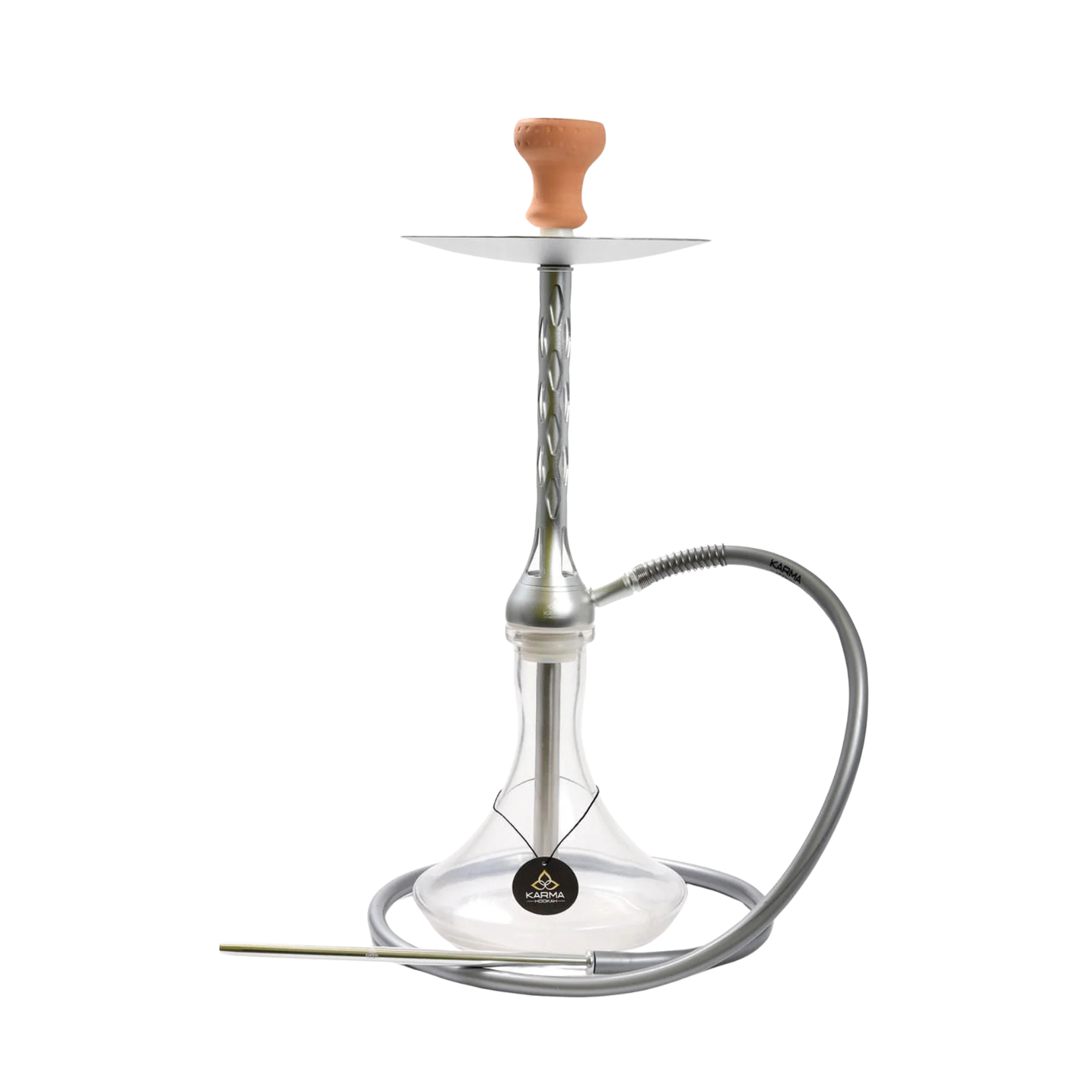 Mejora tus sesiones de narguile con la cachimba Karma Altria, que cuenta con un elegante exterior de aluminio y un interior de acero inoxidable resistente a la oxidación que garantiza la durabilidad y la pureza del sabor. La innovadora base de vidrio atornillable ofrece un ajuste seguro y una instalación sencilla, mientras que la base ancha mejora la estabilidad y el rendimiento. Esta cachimba incluye una manguera de silicona, un cabezal y pinzas, lo que proporciona todo lo que necesitas para una experiencia de fumar superior.